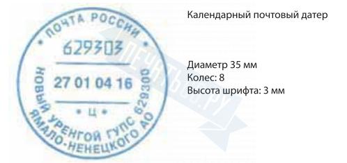 | Календарный почтовый датер. Диаметр поля: 35 мм. Кол-во колес: 8. Высота шрифта: 3 мм. |
