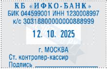 Размер поля: 58 х 37 мм, высота шрифта даты: 4 мм. Штемпельная подушка: синяя. Материал корпуса: металл, пластик.