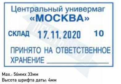 Поле: 56 х 33 мм, высота даты: 4 мм.
