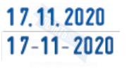Высота шрифта даты: 4 мм. Месяц: цифрами. Разделители: точки.