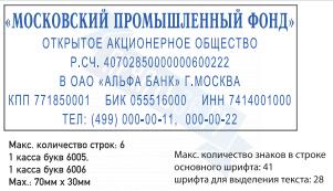 | Размер поля: 70 х 30 мм, строк 6, кол-во знаков 41/28 |