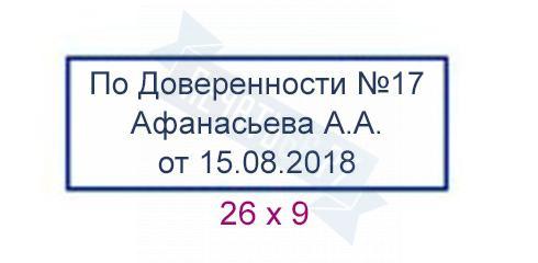 - Штамп по доверенности на ручной пластиковой оснастке по цене 648 рублей и еще 9 видов штампов по доверенности