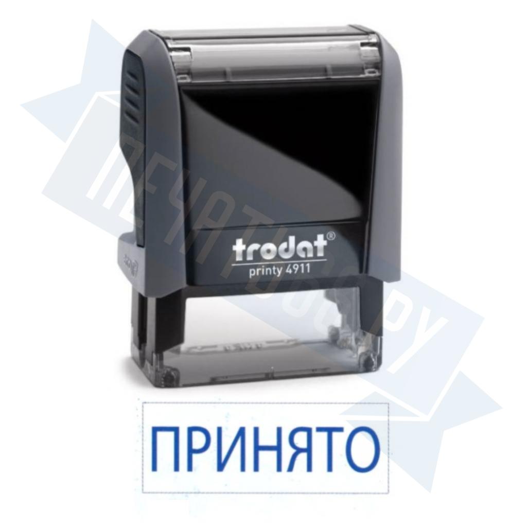 - Штамп ПРИНЯТО на автоматической оснастке Trodat 3911 размером 37 х 14мм по цене 1048 рублей и еще 84 вида штампов со стандартными словами